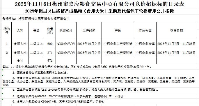 梅县区2025年县级储备成品粮(食用大米)采购及代储包干轮换费用公开招标公告